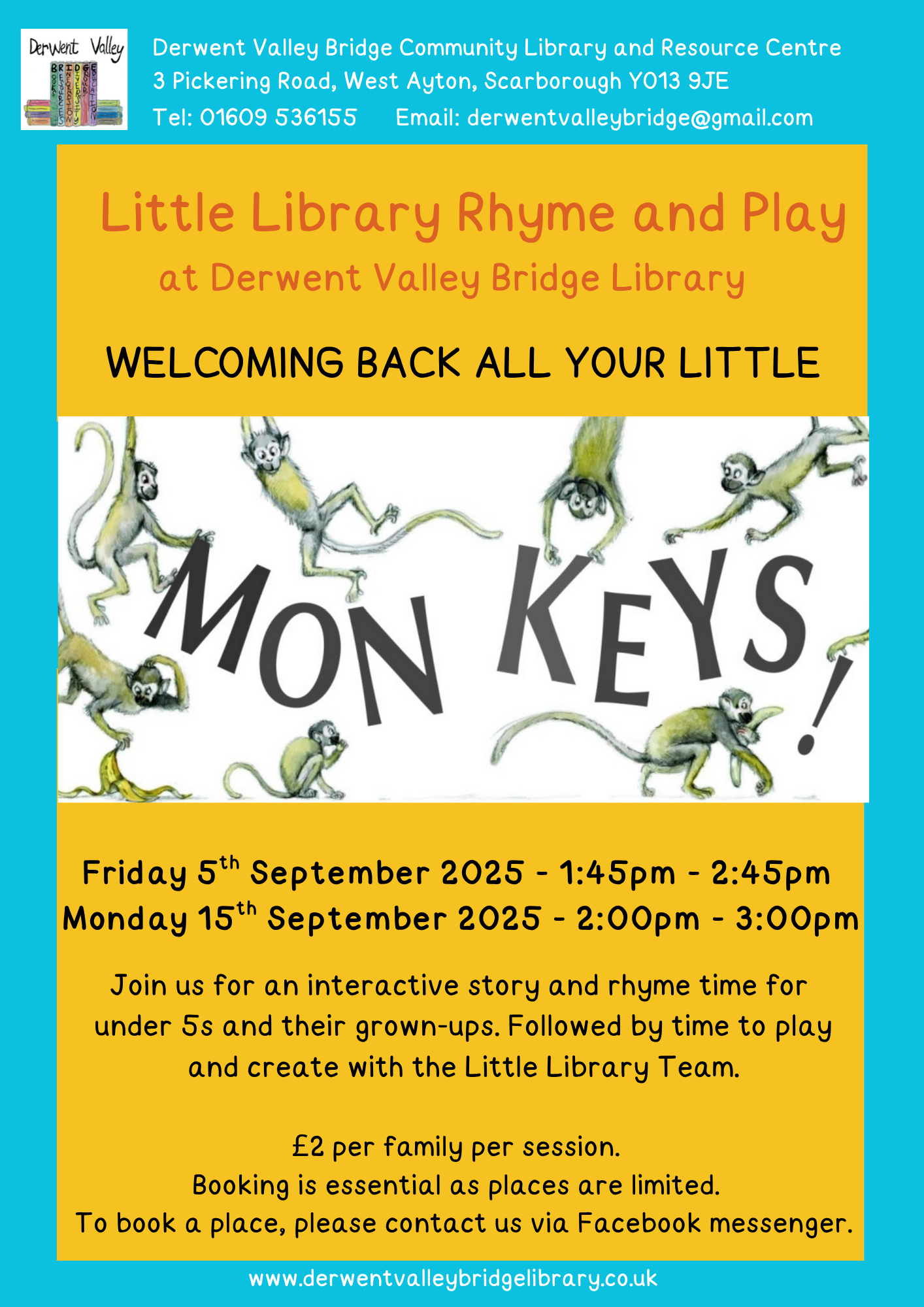 September Storytime We are excited to announce we are holding two Rhyme and Play story time sessions for under 5s in September. You now have the choice of a Monday or a Friday. Leave a Reply Cancel replyYour email address will not be published. Required fields are marked *Comment * Name * Email * Website Save my name, email, and website in this browser for the next time I comment.