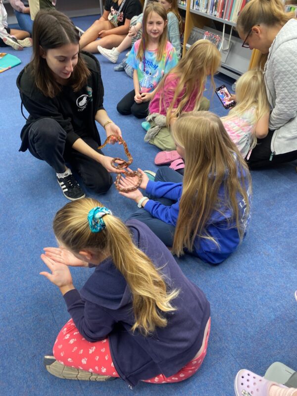 35 children and their parents enjoyed our two sessions and had the chance to make friends with some Zoolab creatures including a snake, a cockroach, a giant snail and a tarantula!!